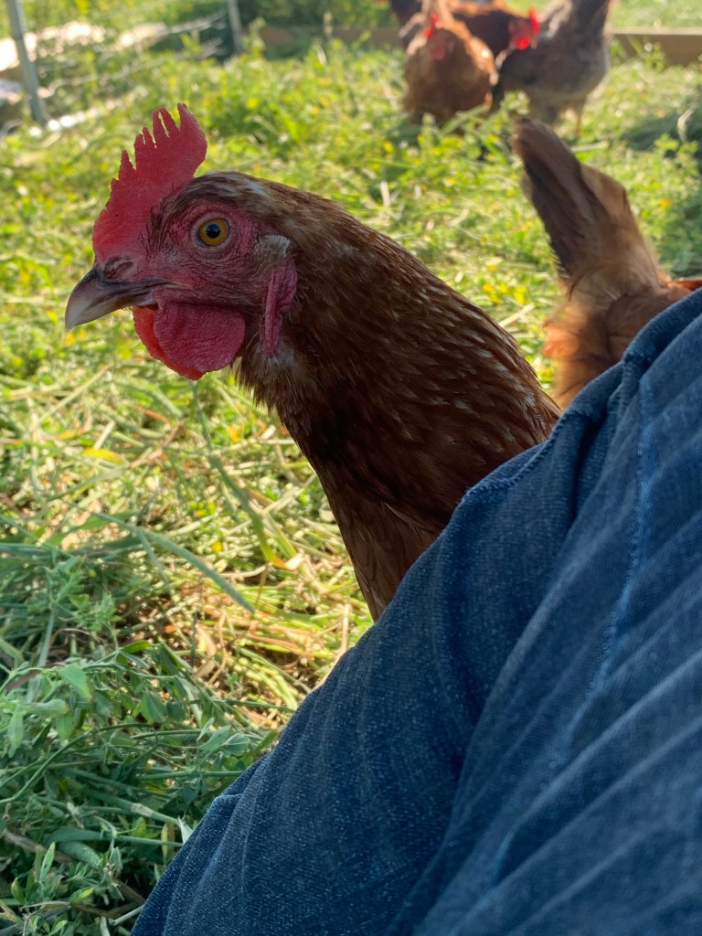 So back to the story, I had just had a close call with a skunk and it’s 11 at night and I thought, ‘I will protect myself by driving my car back by the coop and leaving my headlights on.’ So I did that forgetting that chickens are sensitive to light and wake up or fall asleep kind of like flipping a light switch, so by putting my headlights on the coop, I managed to wake up EVERY SINGLE CHICKEN in the place.