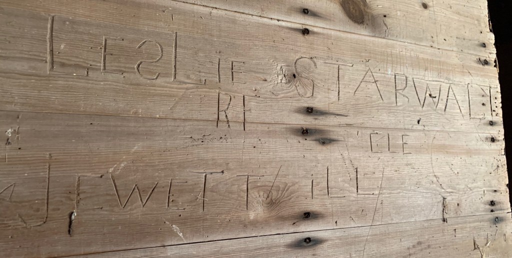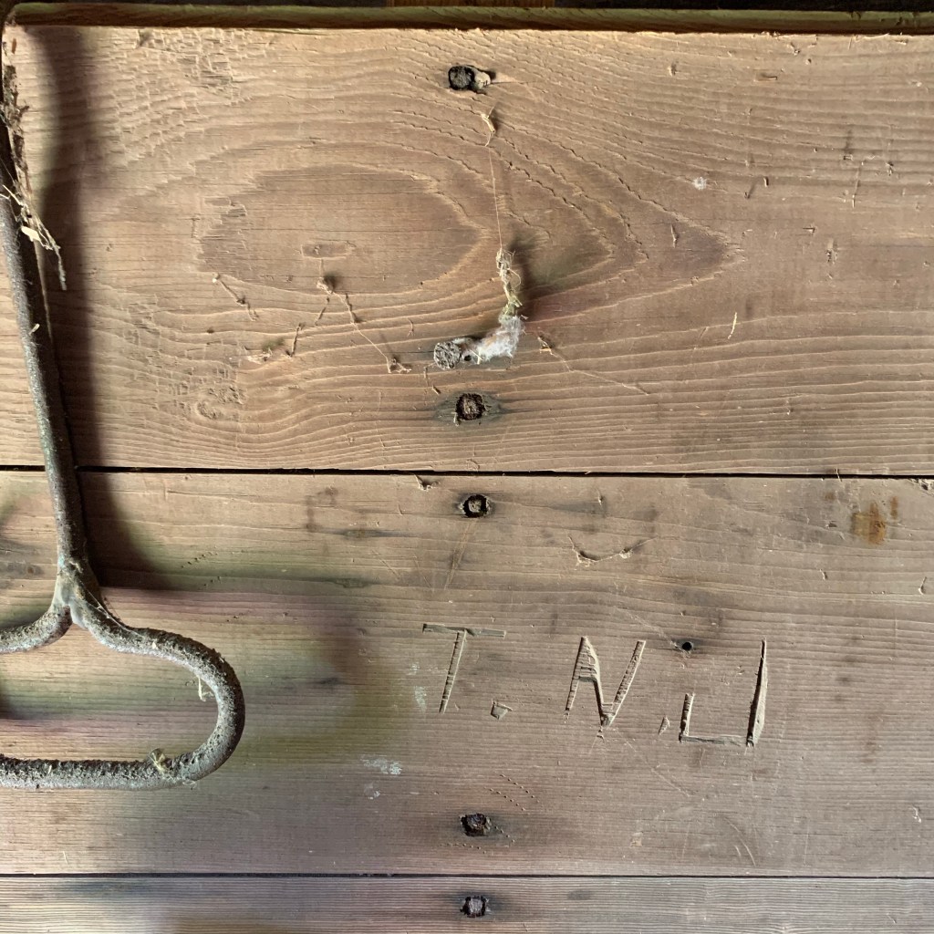 I love our old barn—I always have. When I was little my grandpa told me it was put together with square wooden pegs instead of nails. That seemed so ingenious and magical. And there’s a wall where we have graffiti from the early 1900’s. It fires my imagination, makes me feel connected to my heritage. It’s a long term (back burner—thought it was impossible) dream of mine to put animals back in the stalls. It’s a miracle to me just to be trying.