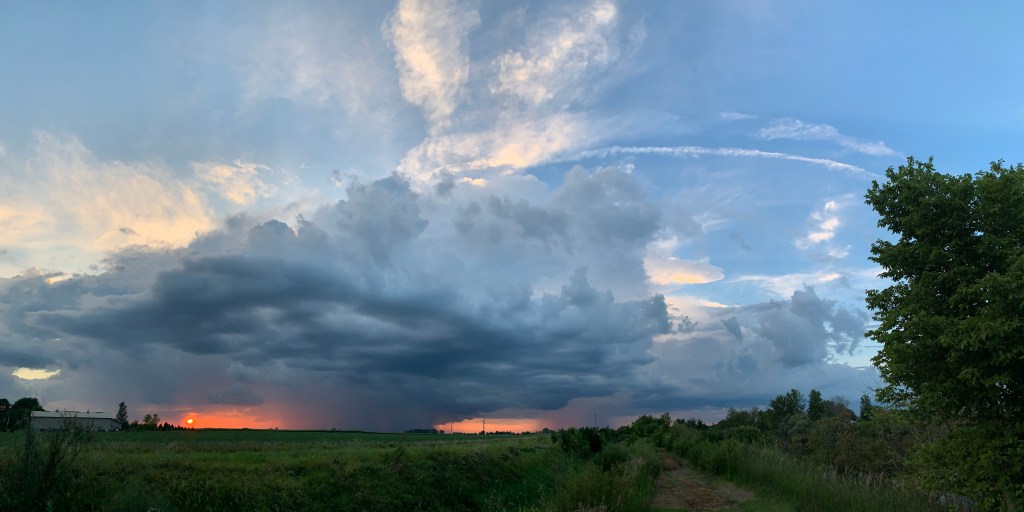 Worked on the chicken coop door and protective mesh. Got 2 new bunnies [squee Squee Squee]. Scurried over to a family pond to let the dog run and go for a quick dip and get our MIND BLOWN by the beautiful sky.