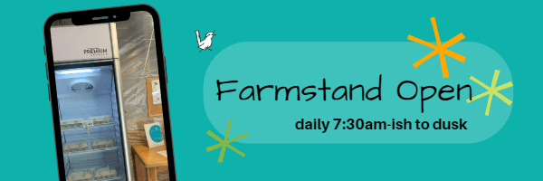 Come visit our farmstand at 983 County Rd 900E, Champaign IL 61822 (Southwest corner of Duncan and the Monticello Road). Open daily from 7:30ish to about dusk. You can always call or text ahead at 312-715-7627 to verify times if you’re wondering.